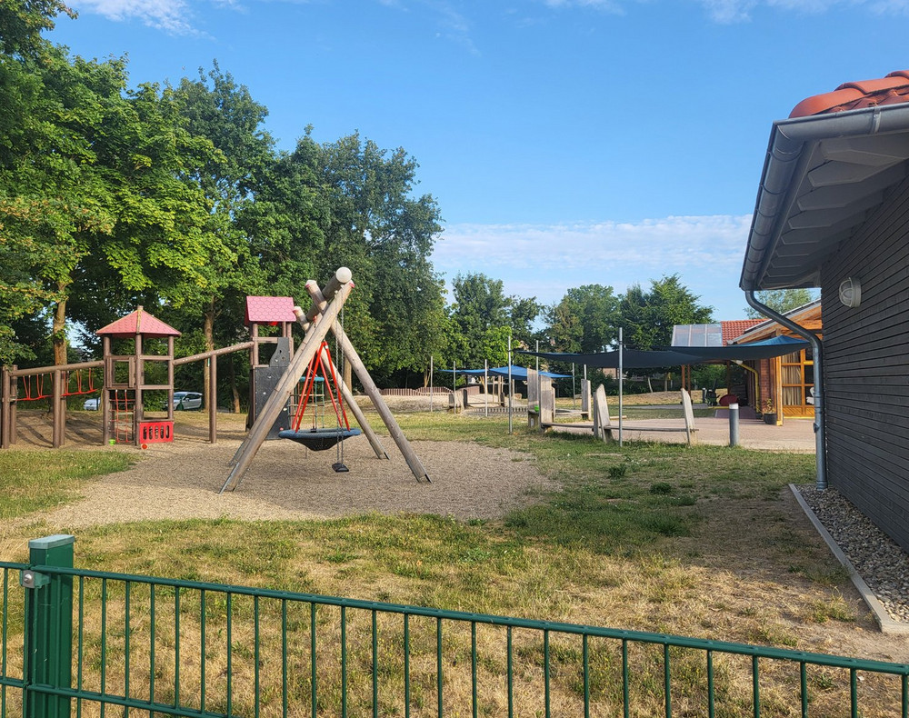 Auf dem großzügigen Außengelände finden die Kinder viel Platz zum Toben und Spielen an der frischen Luft.